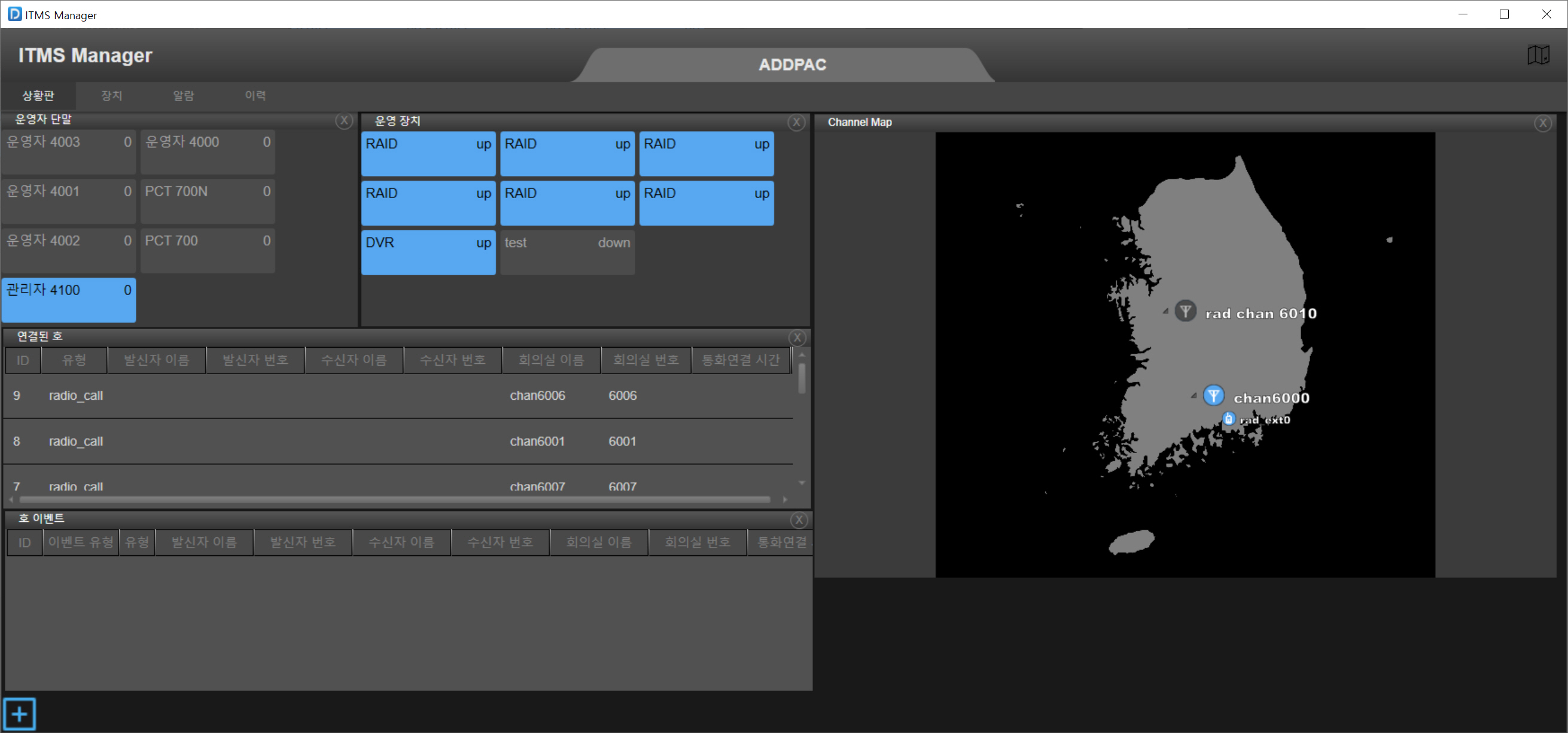 ITMS (Integrated Telephony Management System) UI ´Â »ç¿ëÀÚÀÇ Àå½Ã°£ ¸ð´ÏÅÍ ³ëÃâ½Ã ½Ã°¢Àû ÇǷεµ¸¦ ÁÙÀ̱â À§ÇØ ºí·¢ & ´ÙÅ© Ä®¶ó·Î µðÀÚÀÎ µÇ¾ú½À´Ï´Ù. Áöµµ ¸Ê±â¹ÝÀ¸·Î ¼³°èµÇ¾î Áö¿ªº°·Î ¿ø°Ý ¹«Àü±â °ü¸® Å͹̳Π(LMR °ÔÀÌÆ®¿þÀÌ) µîÀ» ŸÀÏ ÇüÅ·Π°üÁ¦ ÇÒ ¼ö ÀÖµµ·Ï Á÷°üÀûÀÎ ¼³°è±â¹ýÀ» µµÀÔÇÏ¿© µðÀÚÀÎÇÏ¿´½À´Ï´Ù.