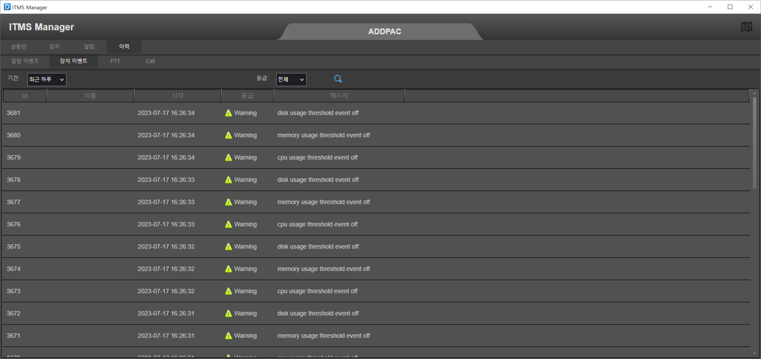 ÀÌ·Â °ü¸® : ÀåÄ¡ À̺¥Æ®