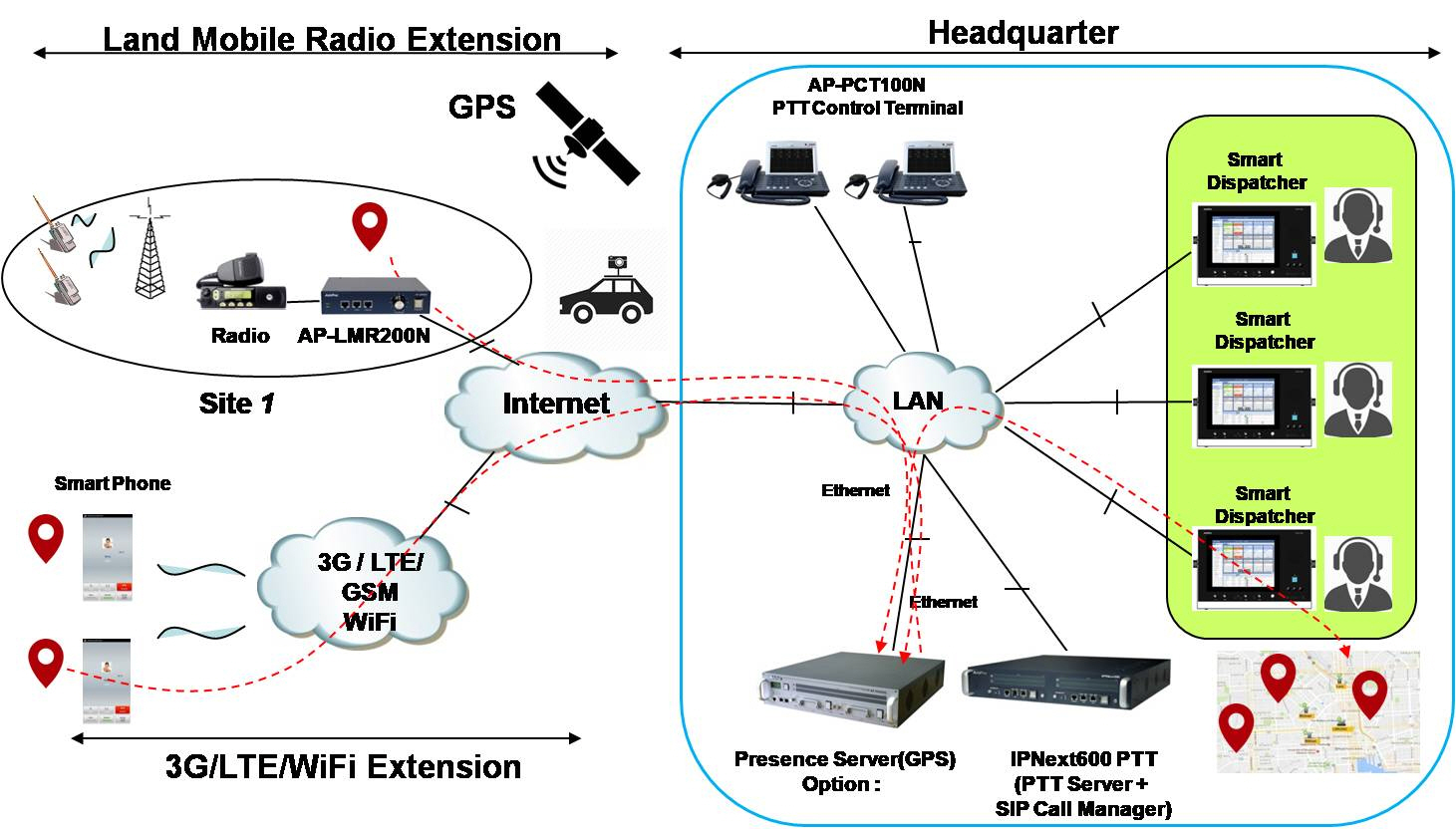 ÀÌÁ¦ LMR °ÔÀÌÆ®¿þÀÌ´Â IP-PBX, PTT ¼¹ö, PTT ¿ë IP Àüȱ⠵î°ú °áÇÕÇØ ±âÁ¸ÀÇ Island ŸÀÔÀÇ ¹«Àü±â ½Ã½ºÆÀ CoverageÀ» ¿¡Áö ¿µ¿ª¿¡¼ Å»ÇÇÇØ ¸ÞÀÎ Ä¿¹Â´ÏÄÉÀÌ¼Ç ¼Ö·ç¼ÇÀ¸·Î¼ »õ·Î¿î ¸ðµ¨À» Á¦½ÃÇϰí ÀÖ½À´Ï´Ù. VoIP Åë½Å ¹°°á¿¡ ¼øÁ¶·Ó°Ô ÇÕ·ùÇϱâ À§Çؼ´Â ¹«Àü±â ¿¬µ¿½Ã½ºÅÛÀÎ LMR°ÔÀÌÆ®¿þÀ̺ÎÅÍ È®½ÇÇÑ Á¦Ç°À» ¼±ÅÃÇØ¾ß ÇÏ´Â ÀÌÀ¯°¡ ¹Ù·Î ¿©±â¿¡ ÀÖ´Â °ÍÀÔ´Ï´Ù. ¾ÖµåÆÅÀÇ AP-LMR500Àº Àü¸éºÎ¿¡ Ä®¶óLCD, ¿ø°Ý¹«Àü±â Á֯ļö Á¶Àý ·ÎÅ͸®½ºÀ§Ä¡, º¼·ýÁ¶Àý·ÎÅ͸®½ºÀ§Ä¡, PTTÅë½ÅÀÎÅÍÆäÀ̽º, 2Æ÷Æ® LAN, 1Æ÷Æ® CLI ¿ë RS232C Äܼ֯÷Æ®, ÈĸéºÎ ÀÎÅÍÆäÀ̽º´Â ¹«Àü±âTTL/Differential ½ÅÈ£ÀÎÅÍÆäÀ̽º (Audio Rx, Tx, PTT Rx, PTT Tx ½ÅÈ£), RS422/RS232C Æ÷Æ® ÀÎÅÍÆäÀ̽º, ³»À彺ÇÇÄ¿ ¹× 3.5mm ¿ÜºÎ ½ºÇÇÄ¿ Ãâ·ÂÀÎÅÍÆäÀ̽º ¹× E&M ŸÀÔ5 ÀÎÅÍÆäÀ̽ºµµ Áö¿øÇÏ´Â Â÷¼¼´ë LMR °ÔÀÌÆ®¿þÀÌÀÔ´Ï´Ù. µû¶ó¼ ±º, °æÂû, ¼Ò¹æ¼, °Ç¼³ ÇöÀåµî ¹«Àü±â Ȱ¿ëÀÌ ¸¹Àº Àå¼Ò¿¡¼ AP-LMR500À» Àû¿ëÇϸé, IP-PBX/PTT ¼¹ö ¿Í ¹«Àü±â ½Ã½ºÅÛ°ú ¿¬µ¿µÇ´Â ¹Ìµð¾î °ÔÀÌÆ®¿þÀ̷μ ±â´É»Ó ¾Æ´Ï¶ó ¹«Àü±â ¸Á°£ ¿¬µ¿µî ÃÖÀûÀÇ Radio over IP Ä¿¹Â´ÏÄÉÀ̼ÇÀÌ °¡´ÉÇØ Áý´Ï´Ù.