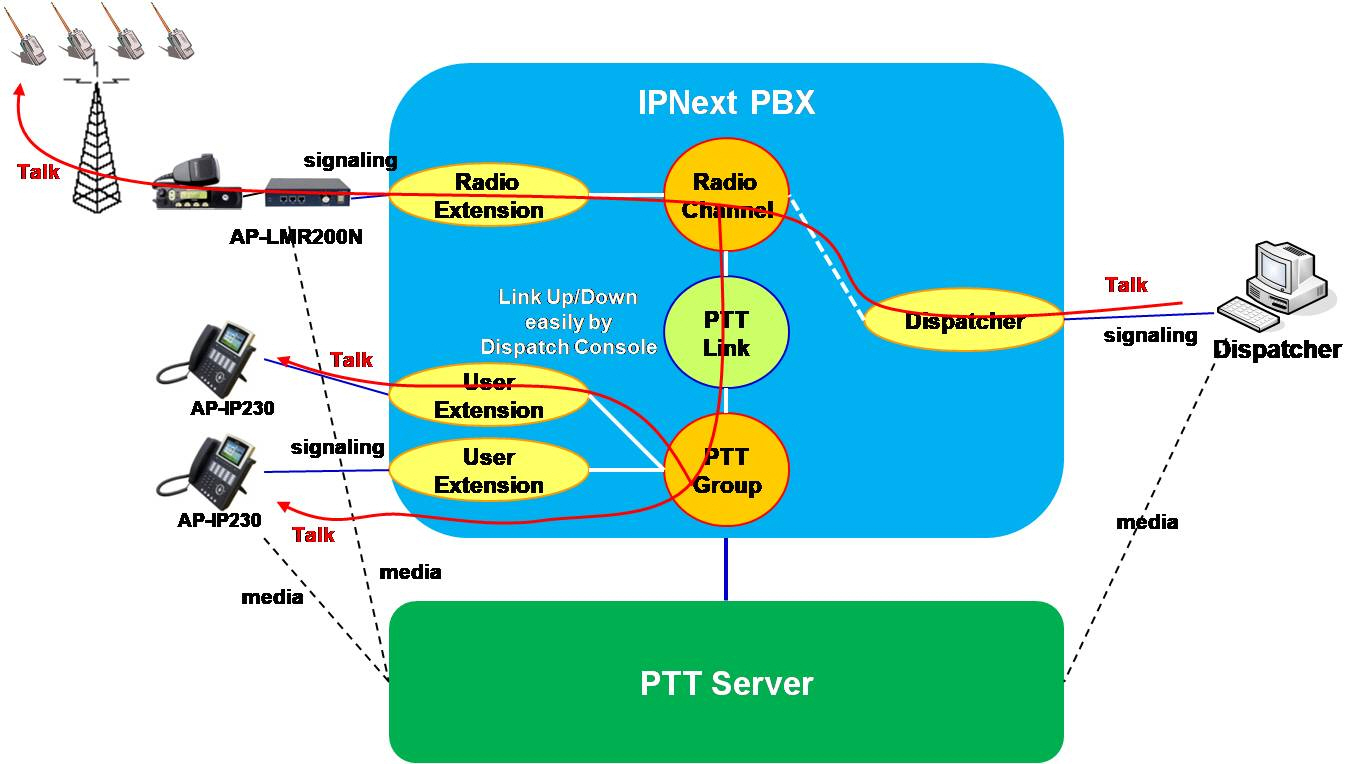 AP-SoftPTT ¸®´ª½º OS ±â¹ÝÀÇ PTT(Push-to-Talk) ¼¹ö´Â ¾ÖµåÆÅÀÇ Â÷¼¼´ë ITMS ¼Ö·ç¼Ç¿¡¼ ¾ÖµåÆÅ AP-SoftPBX ¿Í ÇÔ²² ¿¬µ¿µÇ¾î IP ±â¹ÝÀ¸·Î ¹«Àü±â ¹× IP ÀüȱâÀÇ Push-to-Talk ¼ºñ½º ±â´ÉÀ» Áö¿øÇÏ´Â ÀåºñÀÔ´Ï´Ù. IP ±â¹ÝÀÇ Push-to-Talk ¼ºñ½º´Â ±âÁ¸ÀÇ ¹«Àü±â ±â¹ÝÀÇ ´Ü¼ø Push-to-Talk ¼ºñ½º¿¡ ºñÇØ À¯ ¹«¼± ¿¬µ¿À» ½±°Ô ÇÒ¼ö ÀÖÀ¸¸ç Áö¿ªÀûÀÎ Á¦ÇÑÀÌ °ÅÀÇ ¾ø½À´Ï´Ù. ¶ÇÇÑ ÀÎÅÍ³Ý Àüȱâ´É°ú µ¿½Ã¿¡ PTT ±â´ÉÀ» Á¦°øÇϱ⠶§¹®¿¡ ¸¹Àº ÀåÁ¡À» Á¦°øÇÕ´Ï´Ù. AP-SoftPTT ¹«Àü±â PTT ¼¹ö´Â ±âº»ÀûÀÎ Dial-Out ±â¹ÝÀÇ PtP(Point-to-Point) PTT ¼ºñ½º ¿Ü¿¡ Multi-Group, Multi-Session PTT ¼ºñ½º¸¦ Áö¿øÇÕ´Ï´Ù.