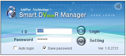 ½º¸¶Æ® À½¼º³ìÃë °ü¸® ¼ÒÇÁÆ®¿þ¾î´Â µî·ÏµÈ °ü¸®ÀÚ¸¸ ·Î±×ÀÎ ÇÒ ¼ö ÀÖµµ·Ï ¼³°èµÇ¾î ÀÖ½À´Ï´Ù. »ç¿ëÀÚ µî·ÏÁ¤º¸´Â »ç¿ëÀÚ À̸§, »ç¿ëÀÚ ID, »ç¿ëÀÚ ÆÐ½º¿öµå °°Àº Á¤º¸¸¦ µî·ÏÇÒ ¼ö ÀÖ½À´Ï´Ù. ·Î±×ÀÎ Ãʱâȸ鿡¼ ¼³Á¤¸Þ´º¸¦ ÅëÇÏ¿© À½¼º³ìÃë¼¹öÀÇ IP ¾îµå·¹½º¿Í Port Number ¸¦ ¼³Á¤ÇÒ ¼ö ÀÖÀ¸¸ç, ÆÐ½º¿öµå ÀúÀå±â´ÉÀ» ÅëÇÏ¿© ÀÚµ¿·Î±×ÀÎ ±â´ÉÀ» Á¦°øÇÕ´Ï´Ù.