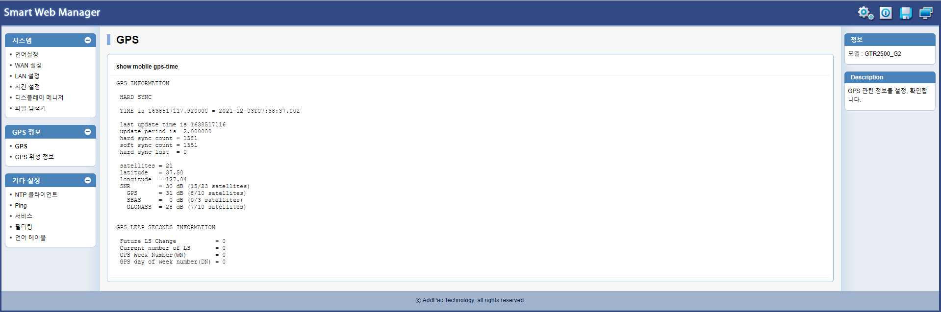 AP-GTR2500GD ÀÓº£µðµå GPS NTP (Network Time Protocol) ¼¹öÀÇ ½º¸¶Æ® À¥°ü¸® ¸Þ´ÏÁ®ÀÇ »ç¿ëÀÚ À¯ÀúÀÎÅÍÆäÀ̽º´Â »ç¿ëÀÚÀÇ Àå½Ã°£ ¸ð´ÏÅÍ ³ëÃâ½Ã ½Ã°¢Àû ÇǷεµ¸¦ ÁÙÀ̱â À§ÇØ ±âÁ¸ µðÀÚÀοܿ¡ ´ÙÅ©¾Øºí·¢ Ä®¶ó·Î µðÀÚÀÎÀ» »õ·Ó°Ô Ãß°¡ ÇϰԵǾú½À´Ï´Ù.