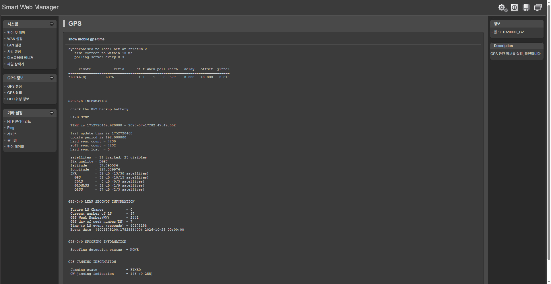 GPS ½Ã°¢µ¿±â ¼¹ö GNSS ´ë½Ãº¸µå (Dash Board) ¼ÒÇÁÆ®¿þ¾î (¿É¼Ç)